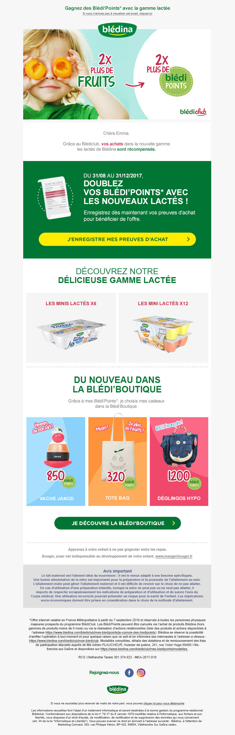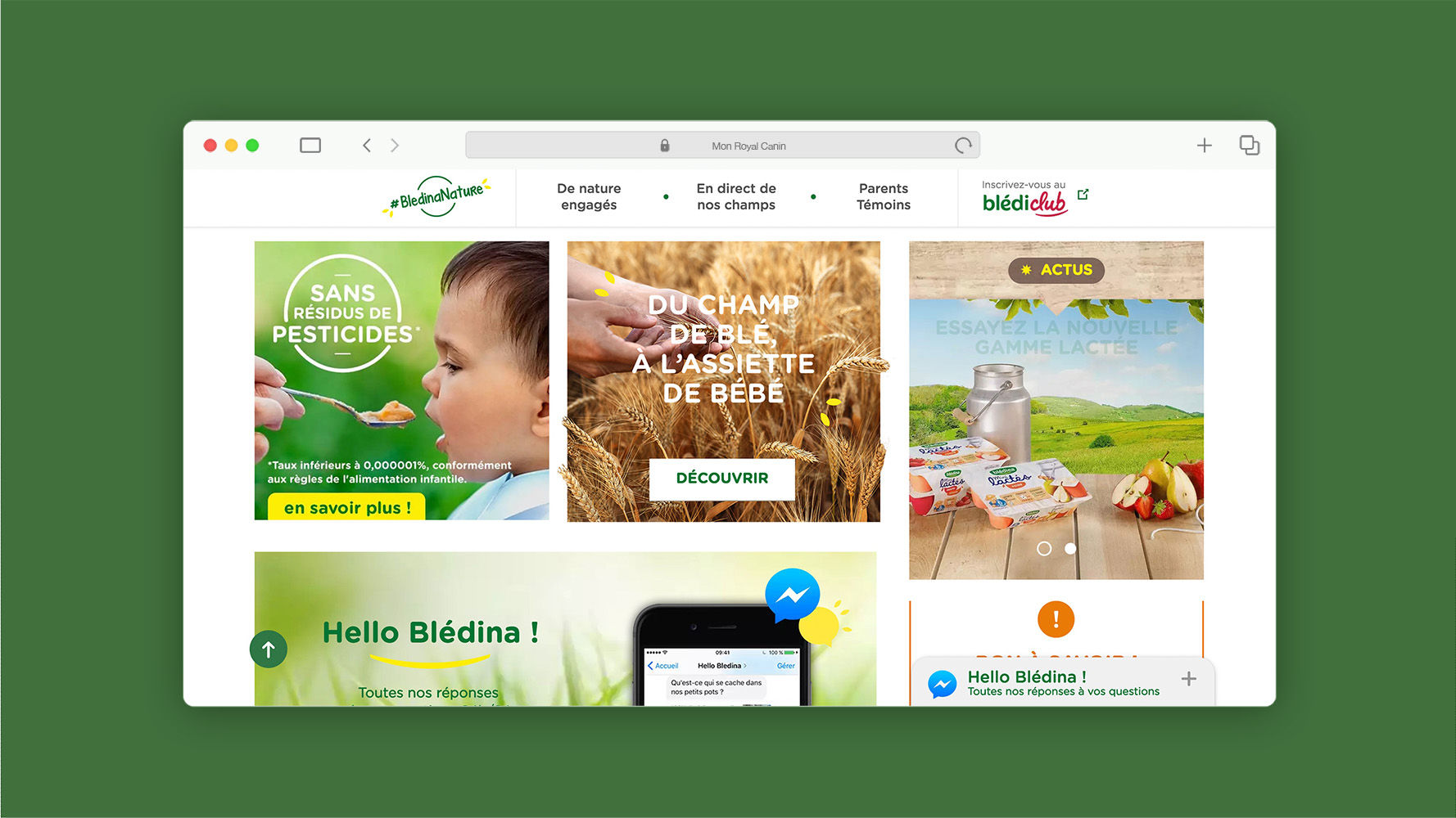 Blédina est une marque d’agroalimentaire spécialisée dans la nutrition infantile. La marque se positionne comme l’une des leaders du marché, tout en prônant son engagement pour le respect de la terre, des agriculteurs qui la cultivent et des nourrissons qui consomment les produits Blédina.